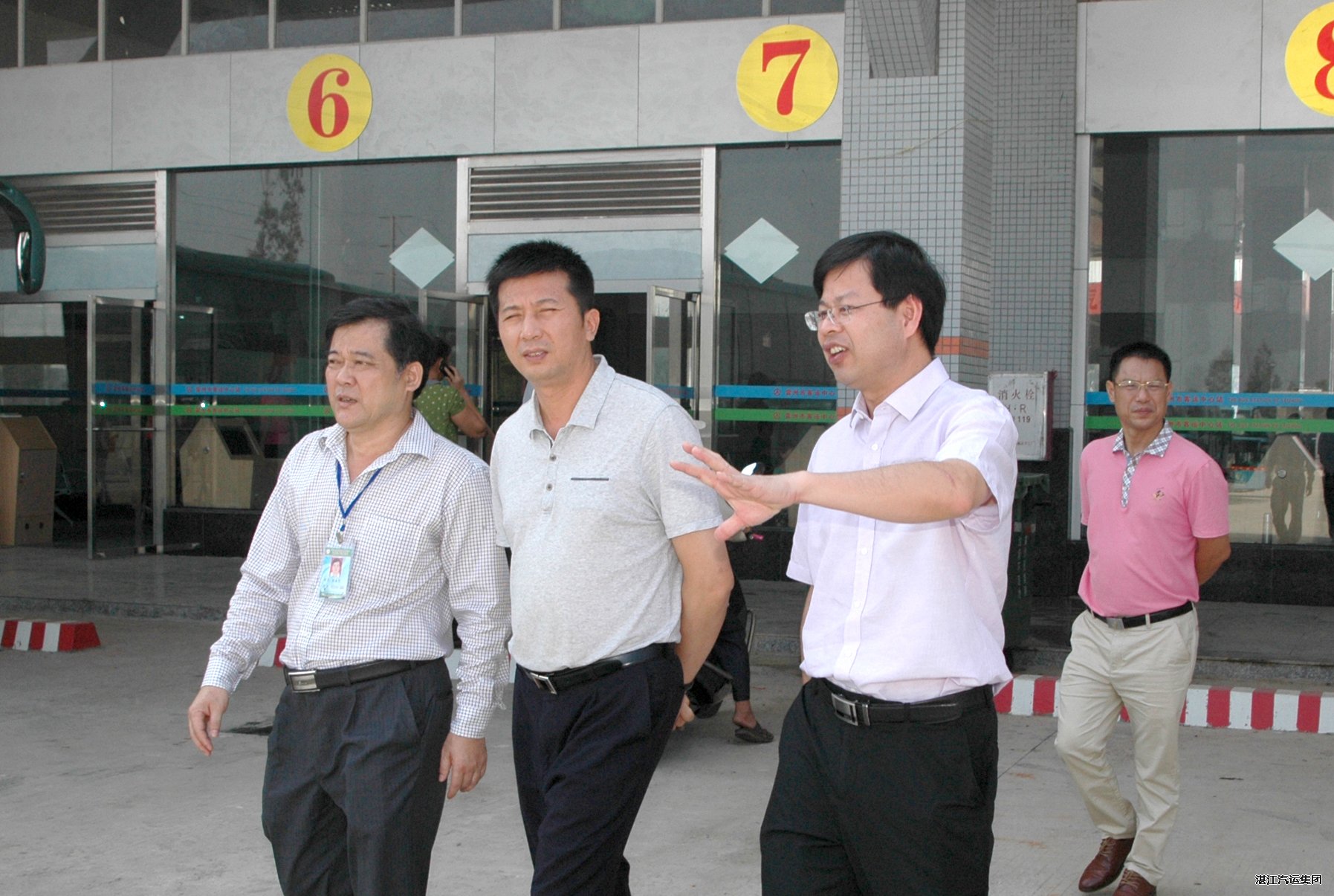 集团公司总经理吴定义(右二)陪同雷州市委常委梁忠兴(右三)视察雷州总站新站。